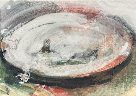 画材の扱いは難しく、まだまだ四苦八苦しながら絵を描いています。描くモチーフや描き方も「これ」というものは定まっていません。日常の中でふと見つけた魅力的なものを、散歩していくように順々に描いてまわっています。「自分の絵」を探す今の日々から、今回の展示のタイトルに「さがしもの」と名前をつけて、作品を展示させていただきます。