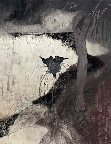 本展のテーマは、記憶や夢の中に現れる風景です。展覧タイトル「明月夜」は、蘇軾の《江城子・乙卯正月二十夜記夢》に由来します。明るい月は「想い」や「永遠」の象徴であり、同時に静けさや寂しさといった感覚も表現しています。三人それぞれの視点から描かれた「静寂」をめぐる表現を通して、心の奥にある情感や記憶を見つめ直すことをテーマに制作しました。